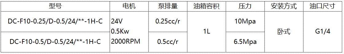 3.液壓泵排量:0.25,0.5 cc/r